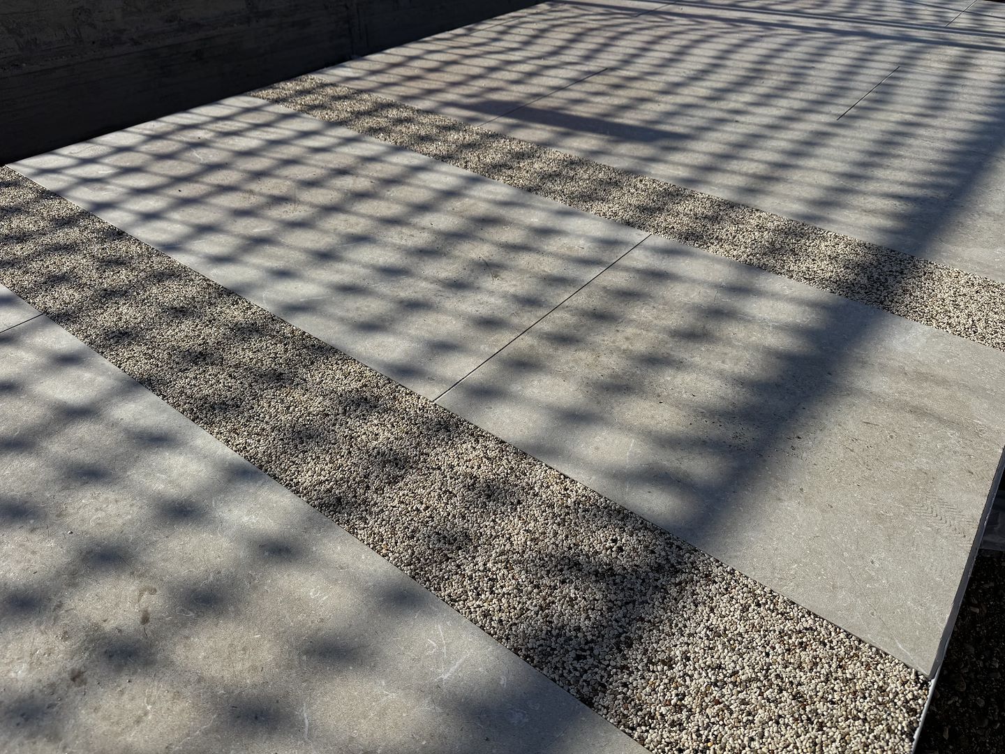 Le lastre in pietra non sono state fornite né posate da Pavima, ma integrate con precisione all’interno del disegno complessivo della pavimentazione.